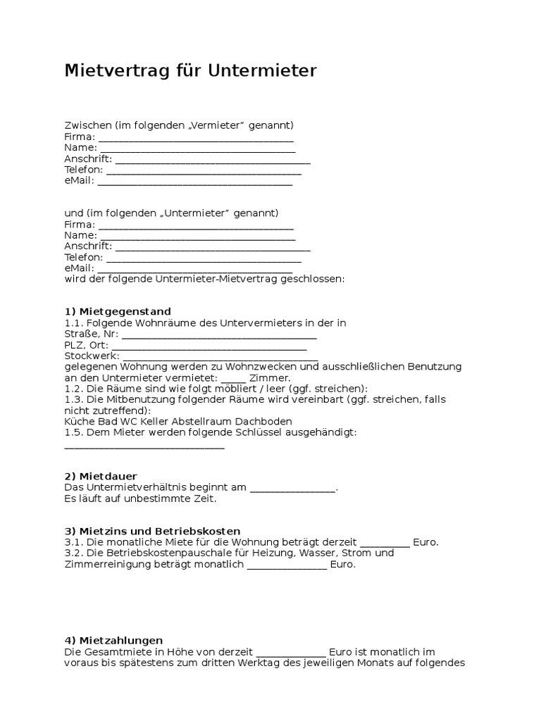 Wunderschönen Untermietvertrag Vorlage Pdf ... (Rodney Johnston)